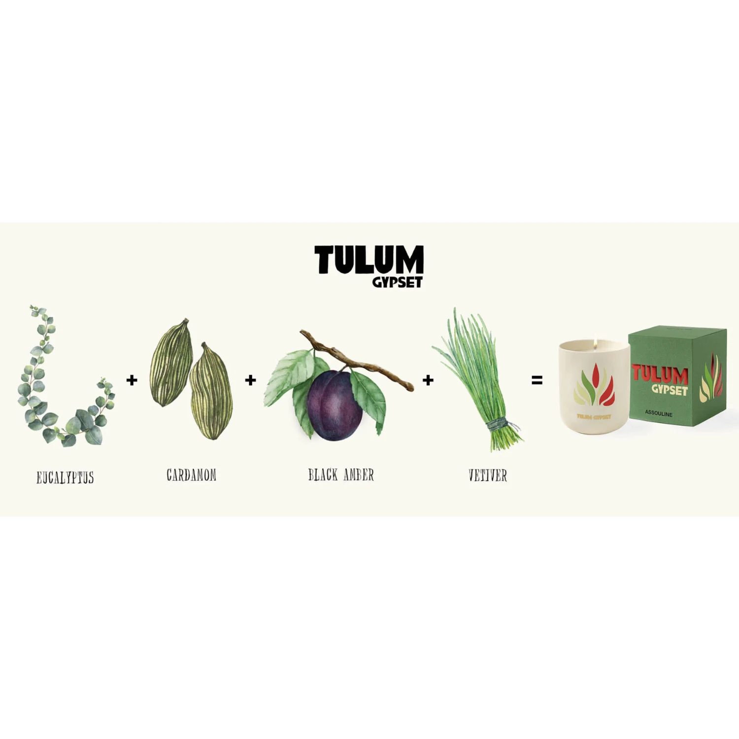 Voyagez à Tulum avec la bougie Tulum Gypset de la collection Travel From Home by … Cette évasion mystique est recréée avec des arômes terreux d’eucalyptus, de sauge et de poivre noir. Des senteurs vivifiantes de sauge, d’ambre noir et de cardamome épicée vous transportent sur la côte idyllique des Caraïbes. Logée dans un pot en céramique, la bougie présente la même sérigraphie emblématique que celle du livre coordonné Tulum Gypset…