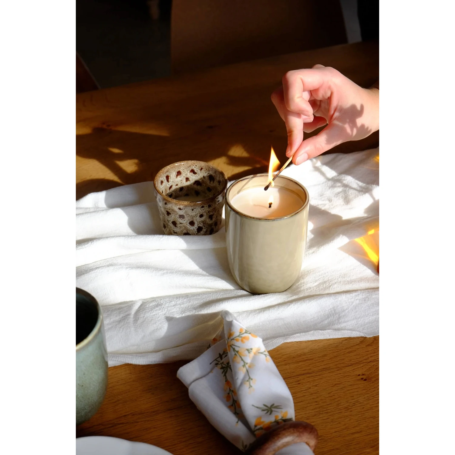 Avec son pot en céramique beige, cette belle bougie est un véritable objet de décoration qui s’intégrera à merveille dans la décoration de votre maison ! Une fois le contenant vide, donnez-lui une seconde vie en l’utilisant comme mug à café, mini cache-pot ou encore verrine pour vos apéritifs entre amis…