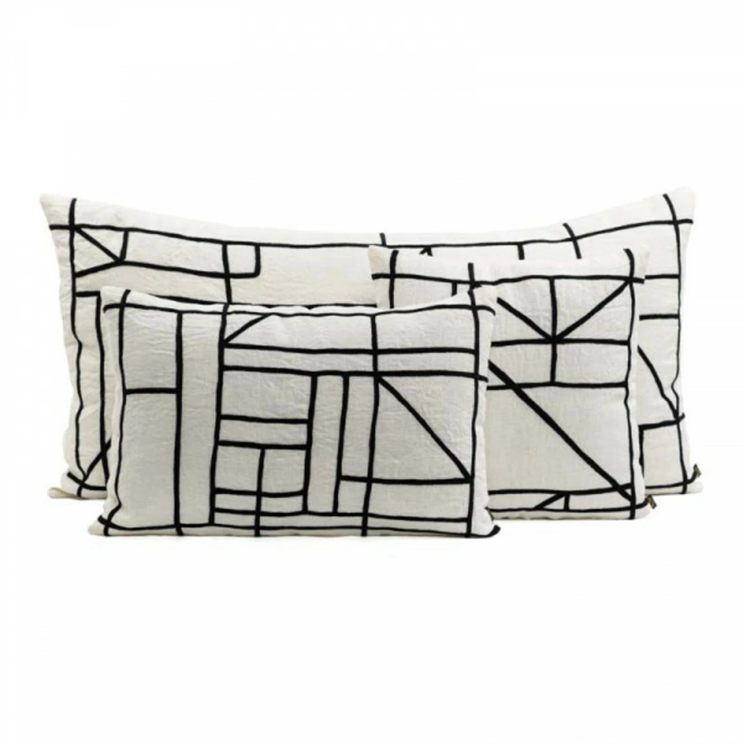 Un magnifique coussin en lin à motifs graphiques de la marque … Ce coussin est disponible en 3 tailles : 45 x 45 cm, 40 x 60 cm et 55 x 110 cm