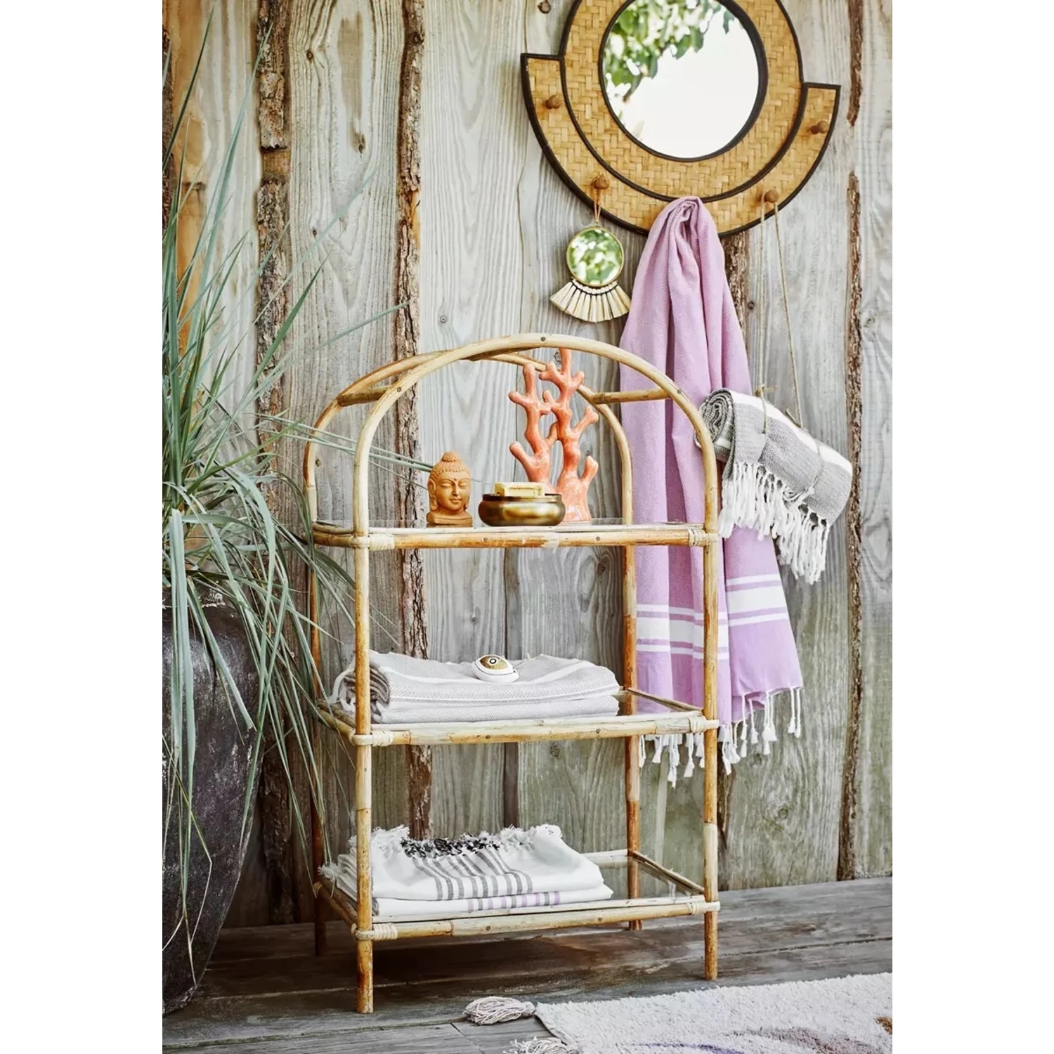 Découvrez la grande étagère en bambou et verre à 3 niveaux de la marque !