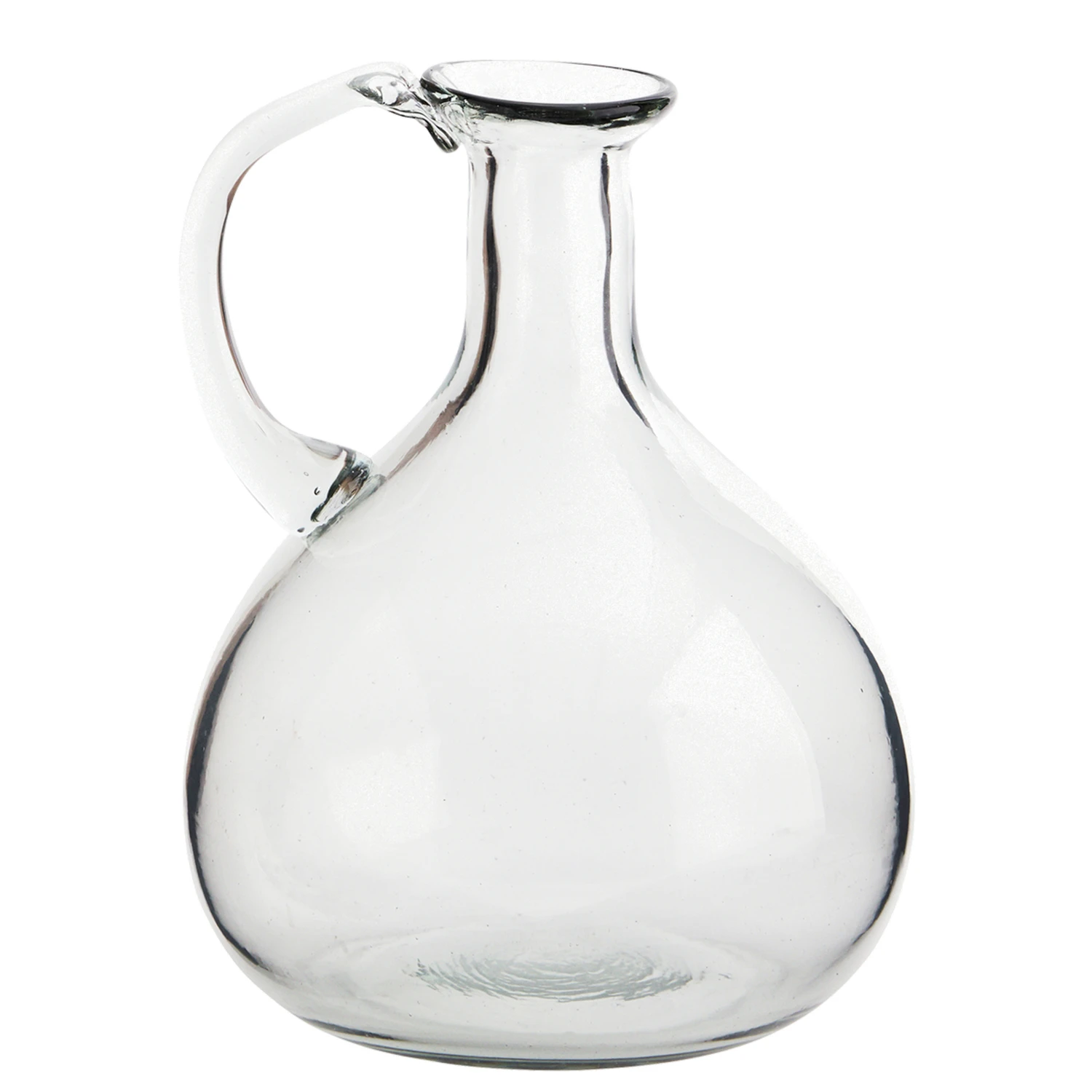 Joli petit pichet en verre avec poignée de la marque de décoration .