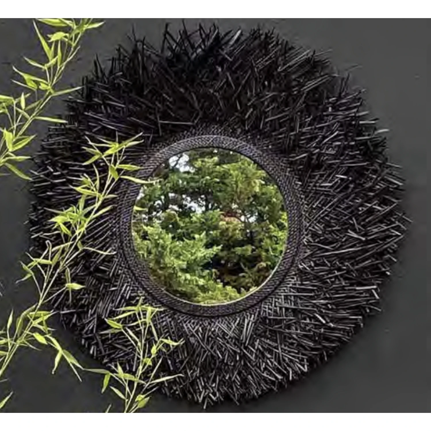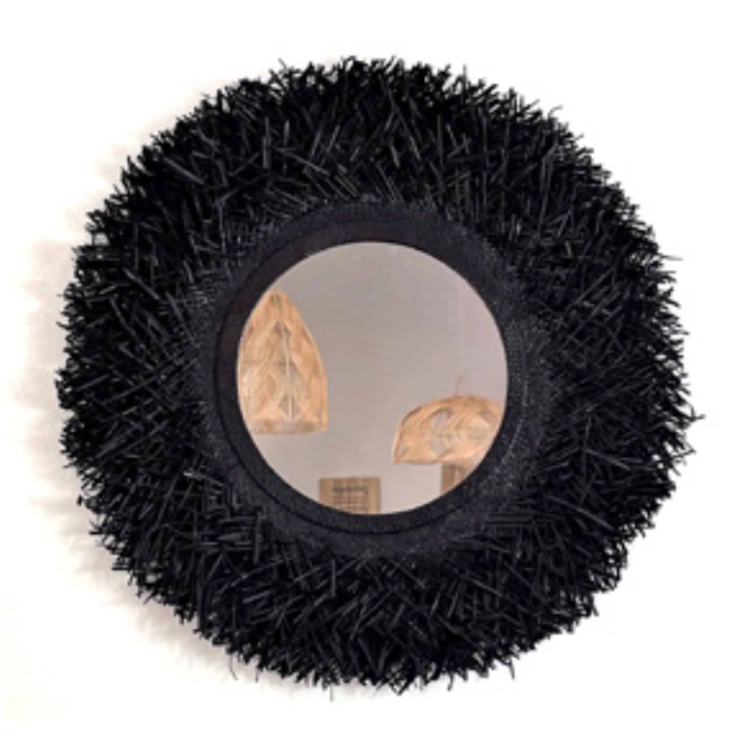 Joli miroir noir en fibres végétales de pandanus de la marque , idéal pour une décoration ethnique chic !