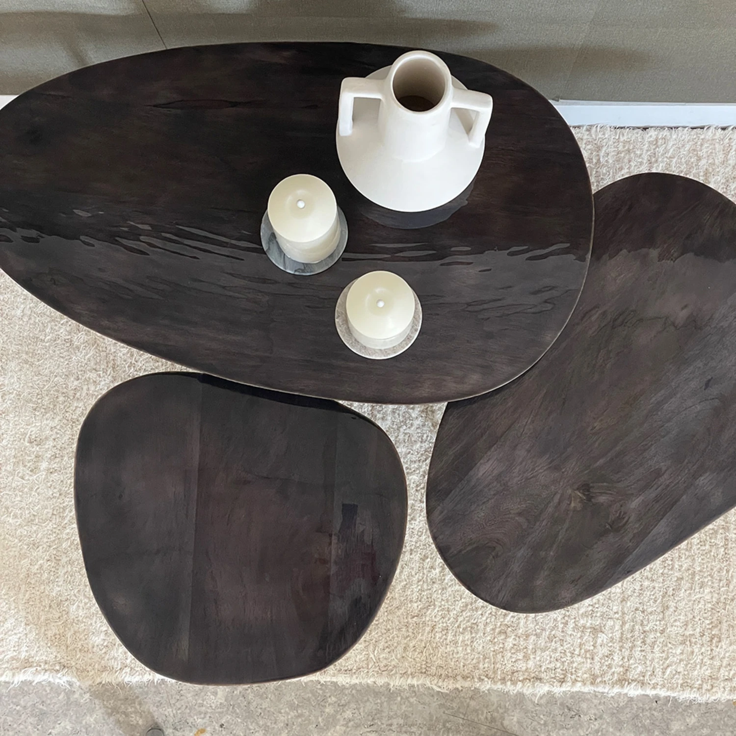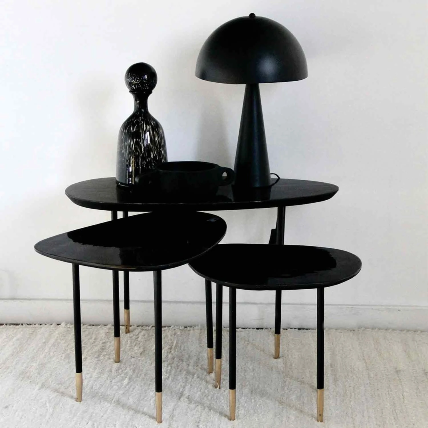 Découvrez le superbe lot de 3 tables basses Charles de la marque , des petites tables noires au design organique et moderne pour sublimer votre salon !
