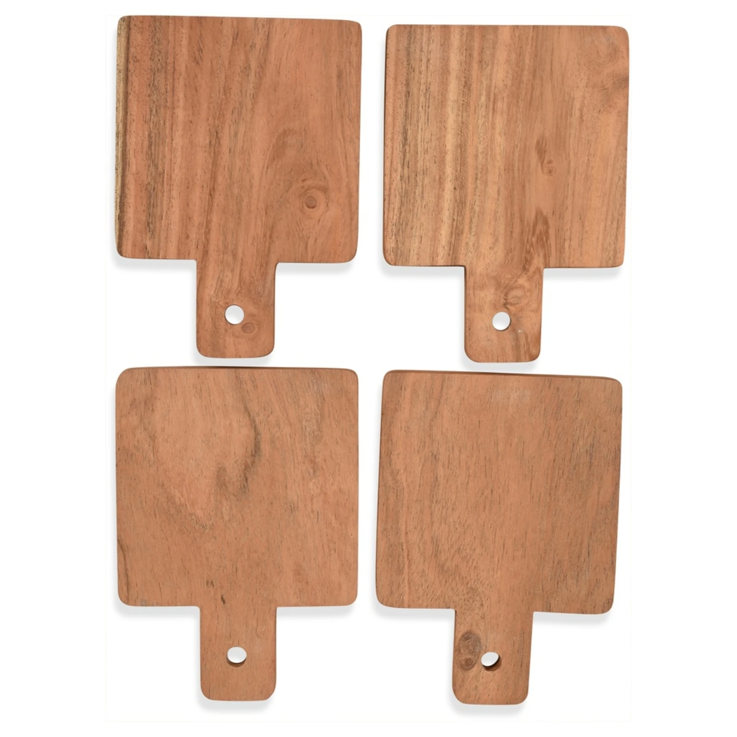 Optez pour le set de 4 minis planches à découper en bois d’acacia de la marque , idéales pour présenter des amuse-bouches et du fromage, ou encore pour s’en servir comme petits plateaux…