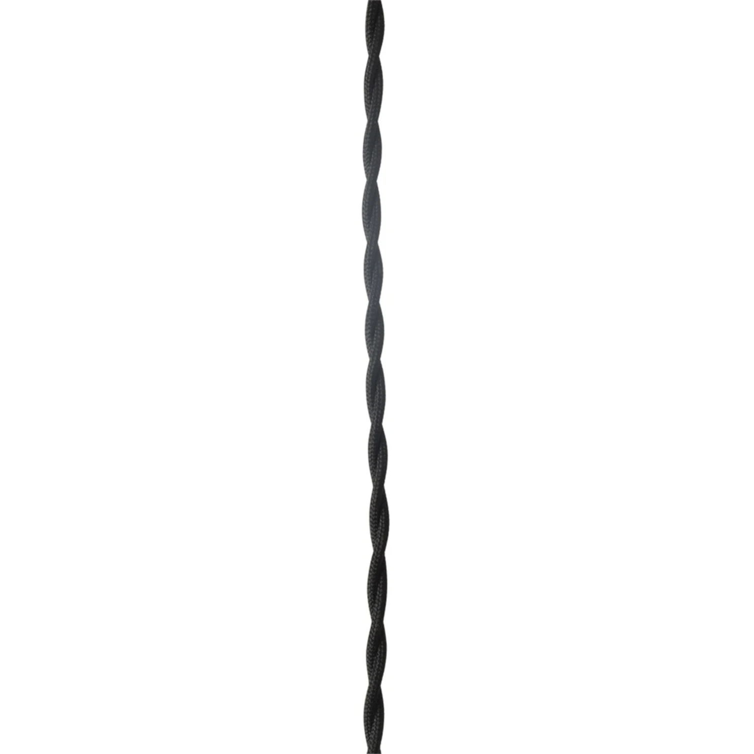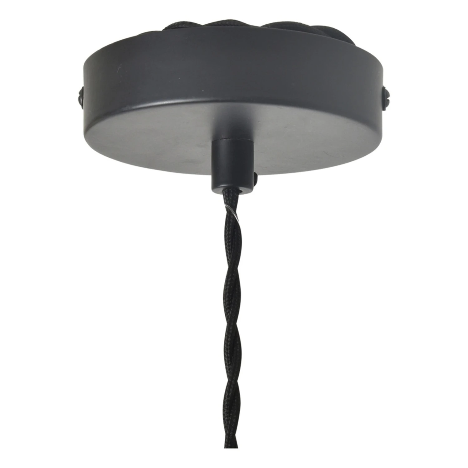 Suspension composée d’une douille et d’une rosace en métal noir ainsi que d’un câble en plastique noir torsadé d’une longueur de 150 cm (réglable).