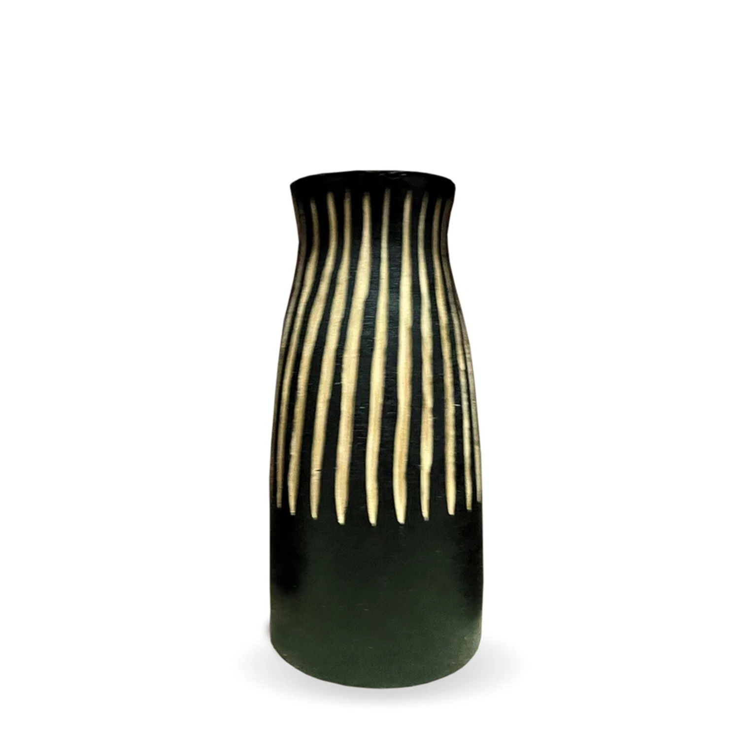 Un superbe vase en bois de paulownia rayé naturel et noir de la marque parisienne . Il s’agit uniquement d’un objet décoratif en bois qui ne peut pas contenir d’eau en raison de son matériau de fabrication.