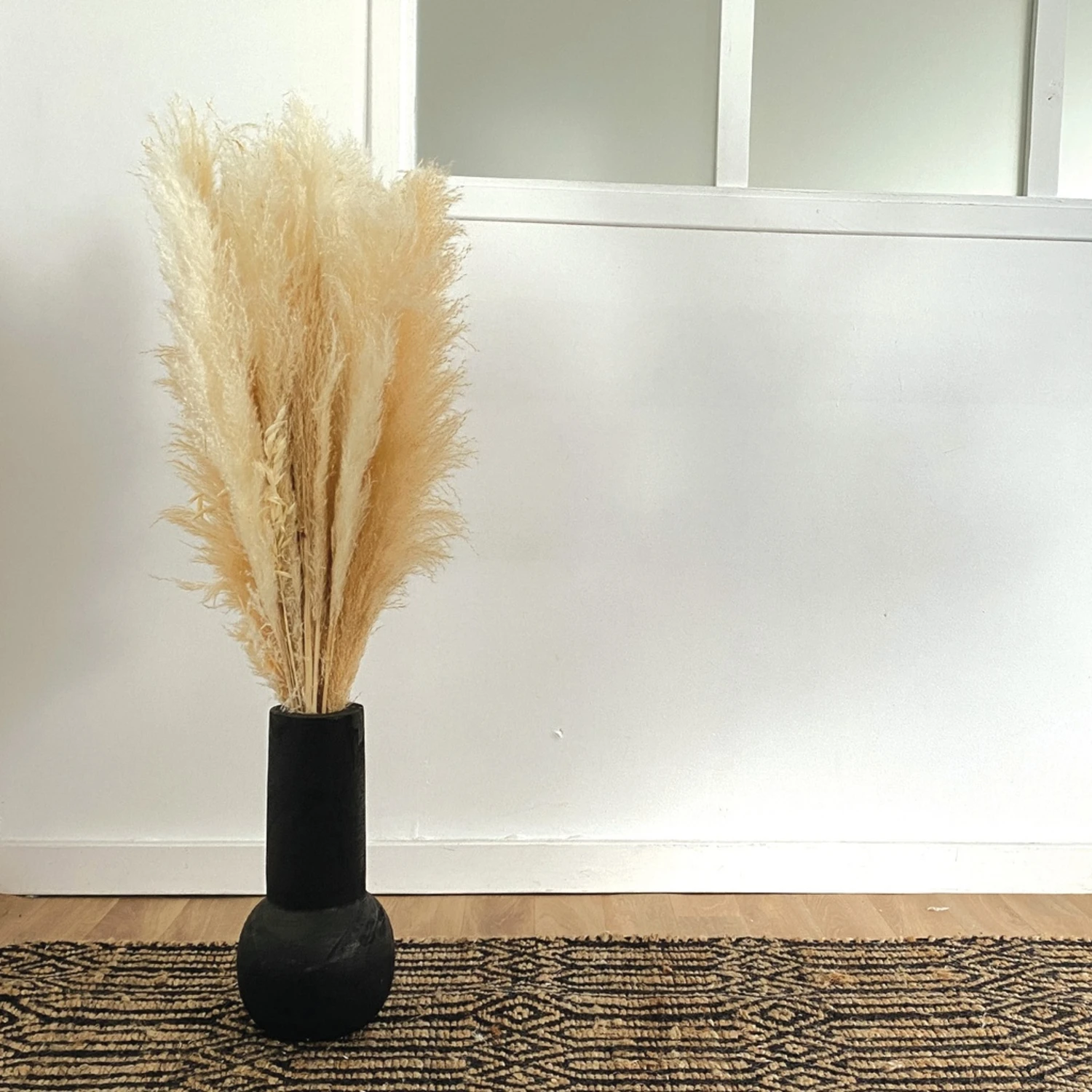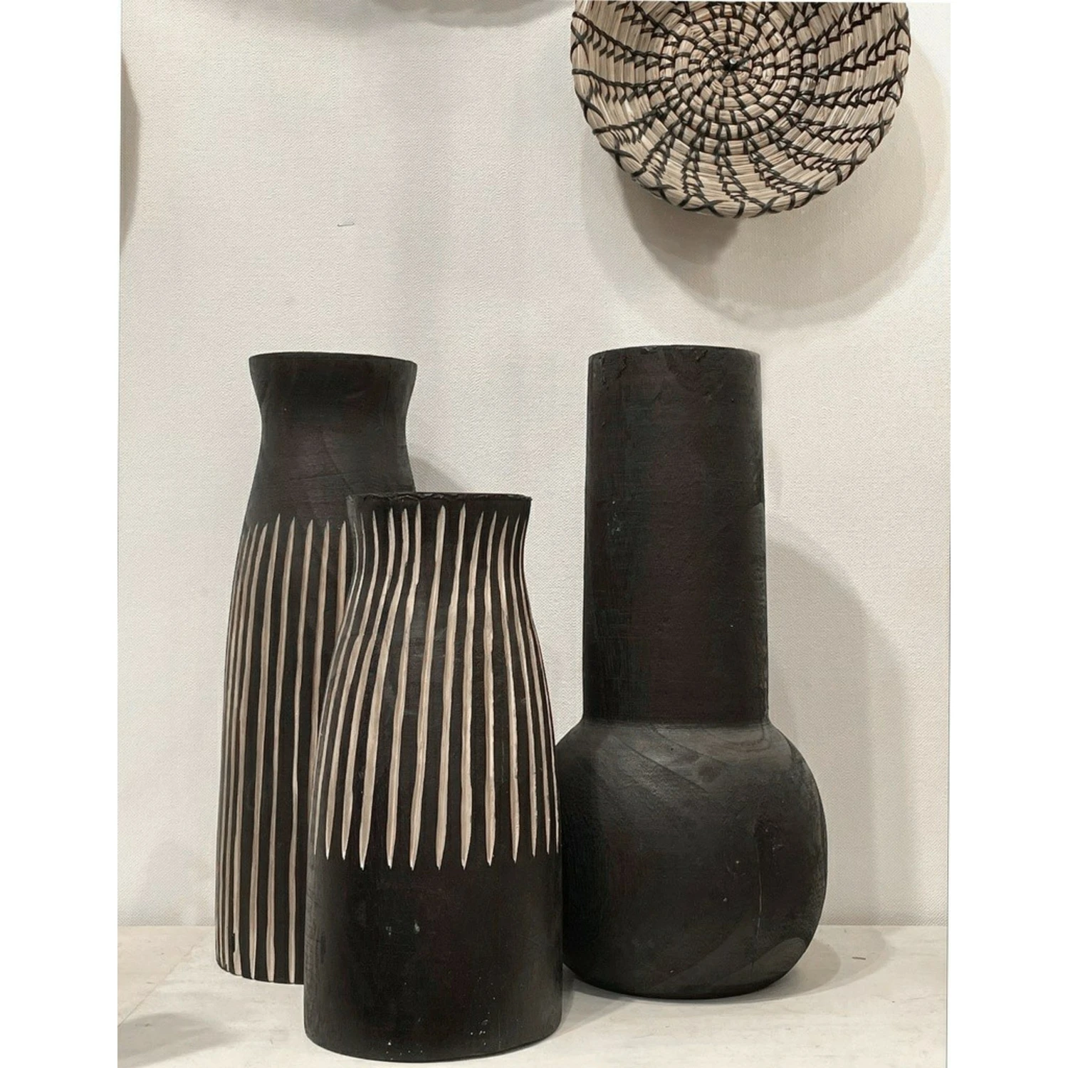 Un superbe vase boule en bois de paulownia noir de la marque parisienne . Il s’agit uniquement d’un objet décoratif en bois qui ne peut pas contenir d’eau en raison de son matériau de fabrication.